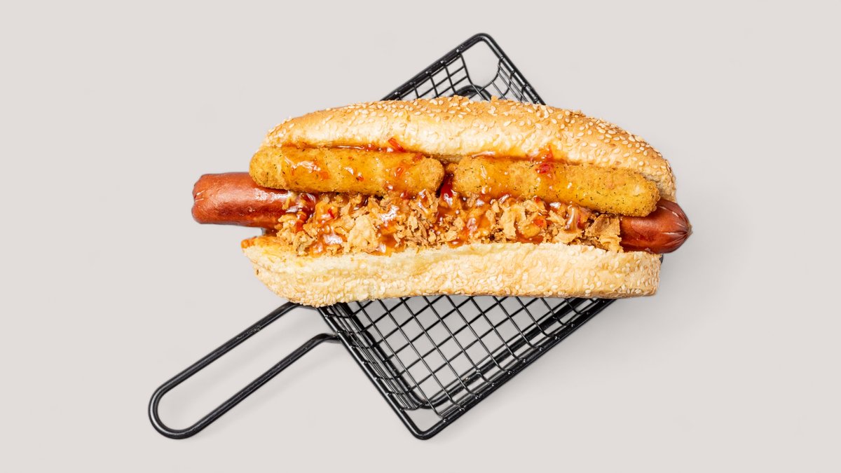 mit Beef Wurst, Mozzarella Sticks und Sweet-Chilisoße