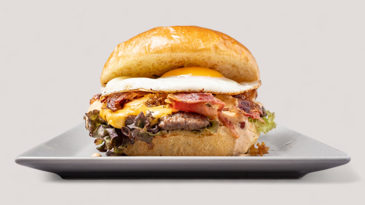 mit 150 g premium Beef, Cheddar, gebratenem Ei und Speck