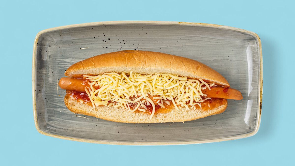 mit 130 g knusprigem Hähnchen, hausgemachtem Brot, Cheddarkäse, Jalapeños und Chili-Käse-Soße