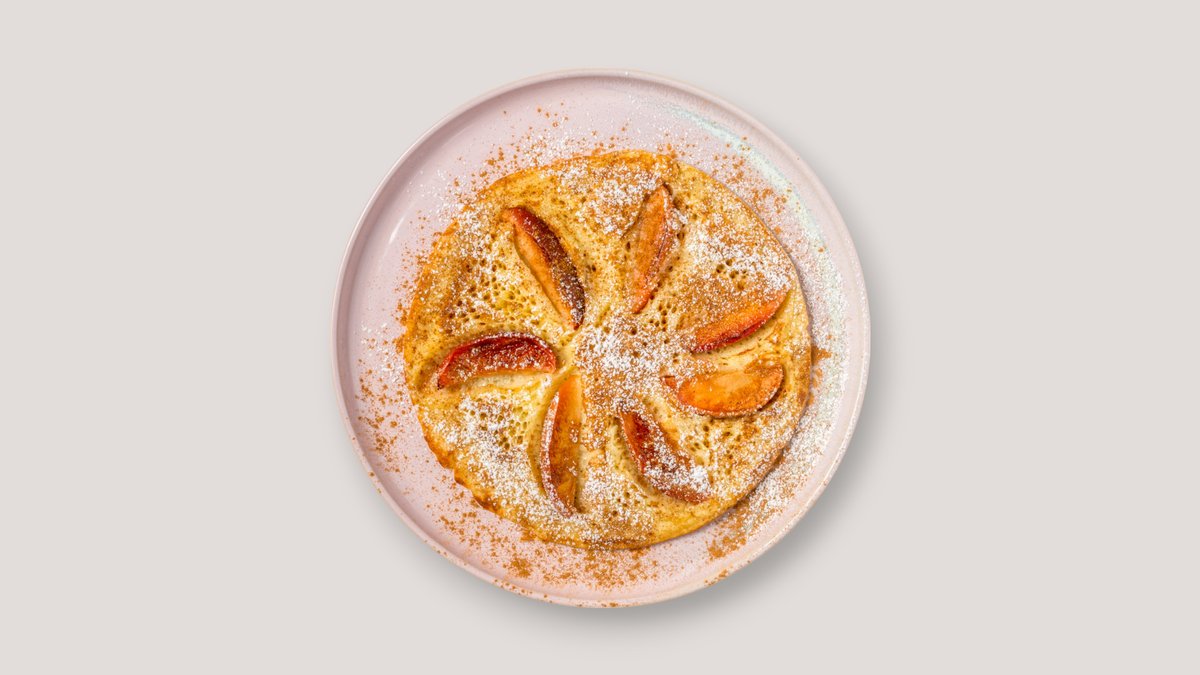 frisch gebackener Pfannkuchen mit Apfel, Zimt und Zucker