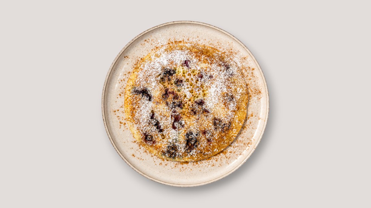 frisch gebackener Pfannkuchen mit Blaubeeren, Zimt und Zucker