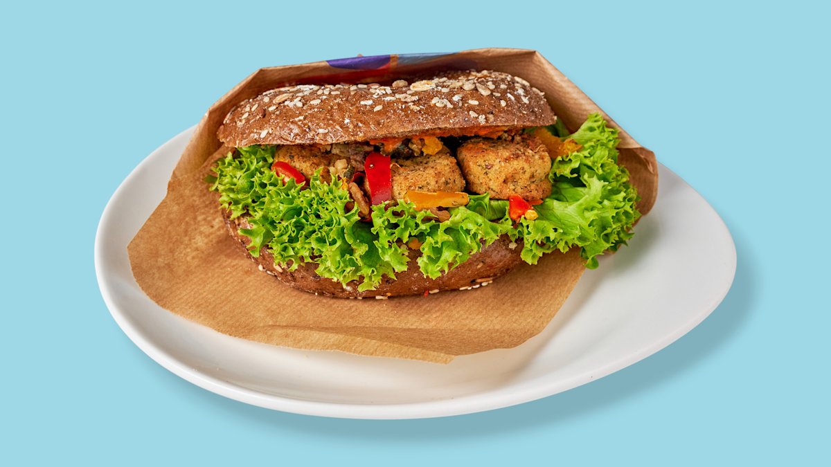 veganer Bagel mit Falafel, Hummus und Gemüse