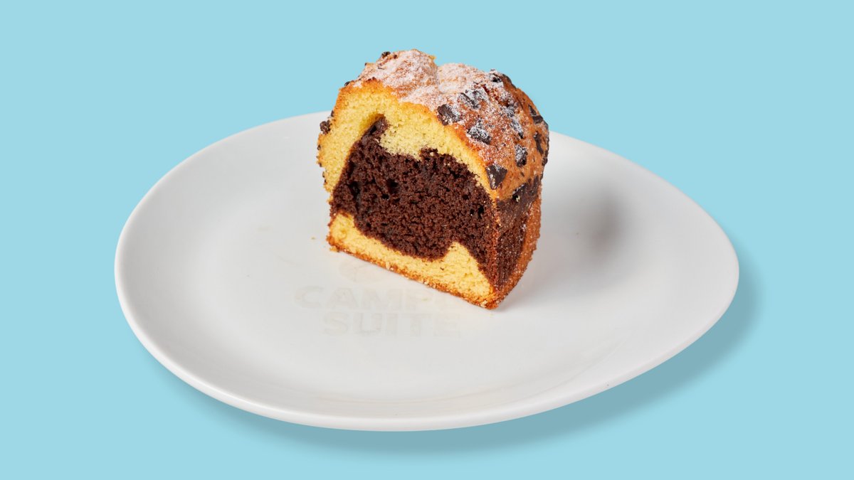 Rührkuchen mit heller Vanille- und dunkler Schokoladenmasse Das Gericht wurde mit Schokolade zubereitet und kann Spuren von Nüssen enthalten