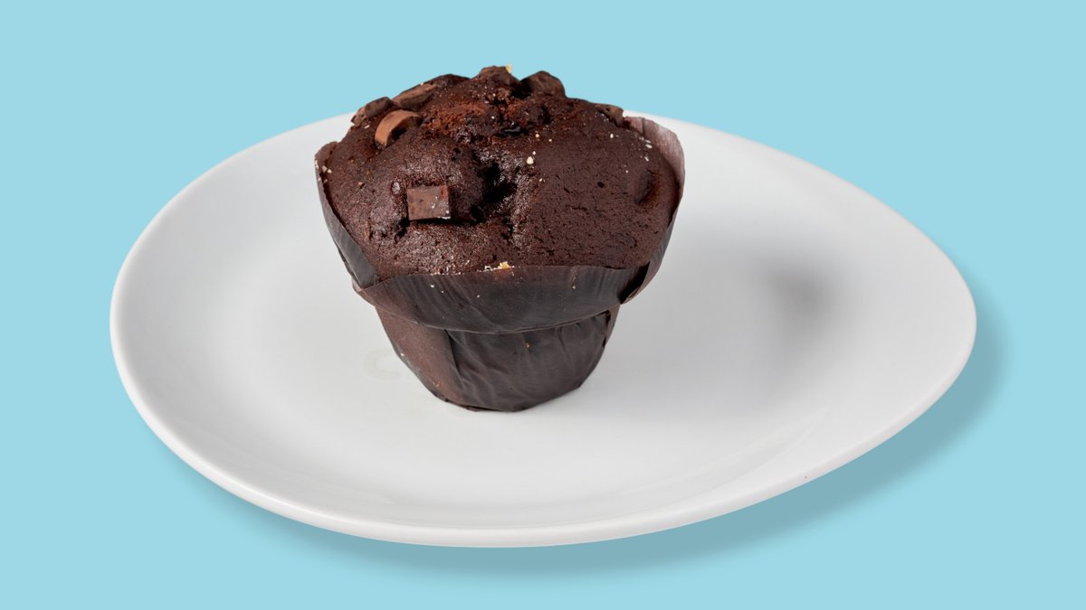 schokoladiger Muffin mit cremiger Füllung Das Gericht wurde mit Schokolade zubereitet und kann Spuren von Nüssen enthalten