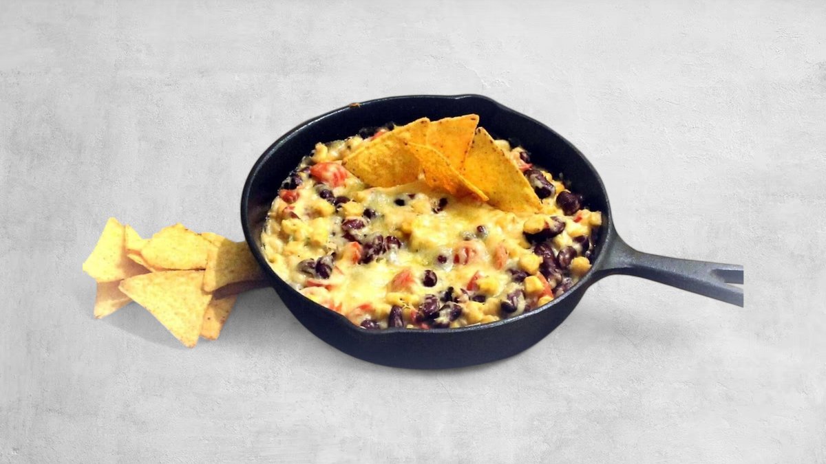 Sättigen Sie sich mit unserer Veggie-Bowl: Saftiger Mais, herzhafte Pilze, cremige Soße und Käse, serviert mit knackigen Nachos. Perfekt für Vegetarier!