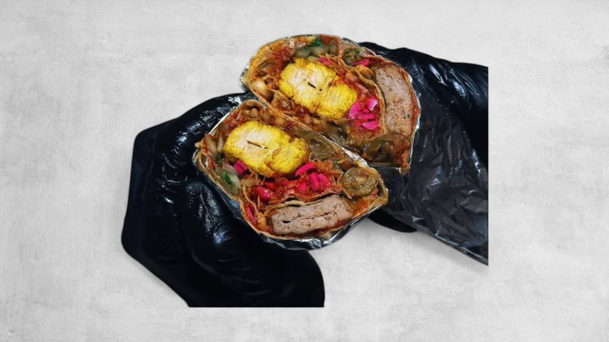 Genießen Sie unseren Wilde Wrap, gefüllt mit Mais, Käse, Pilzen, Rinderhackfleisch (Halal), Nachos & Salat.