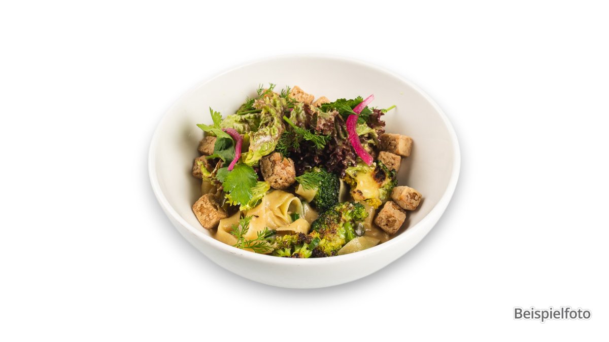 gebratene Glasnudeln mit Gemüse, Sesamöl, Sojasprossen und einer Zutat deiner Wahl