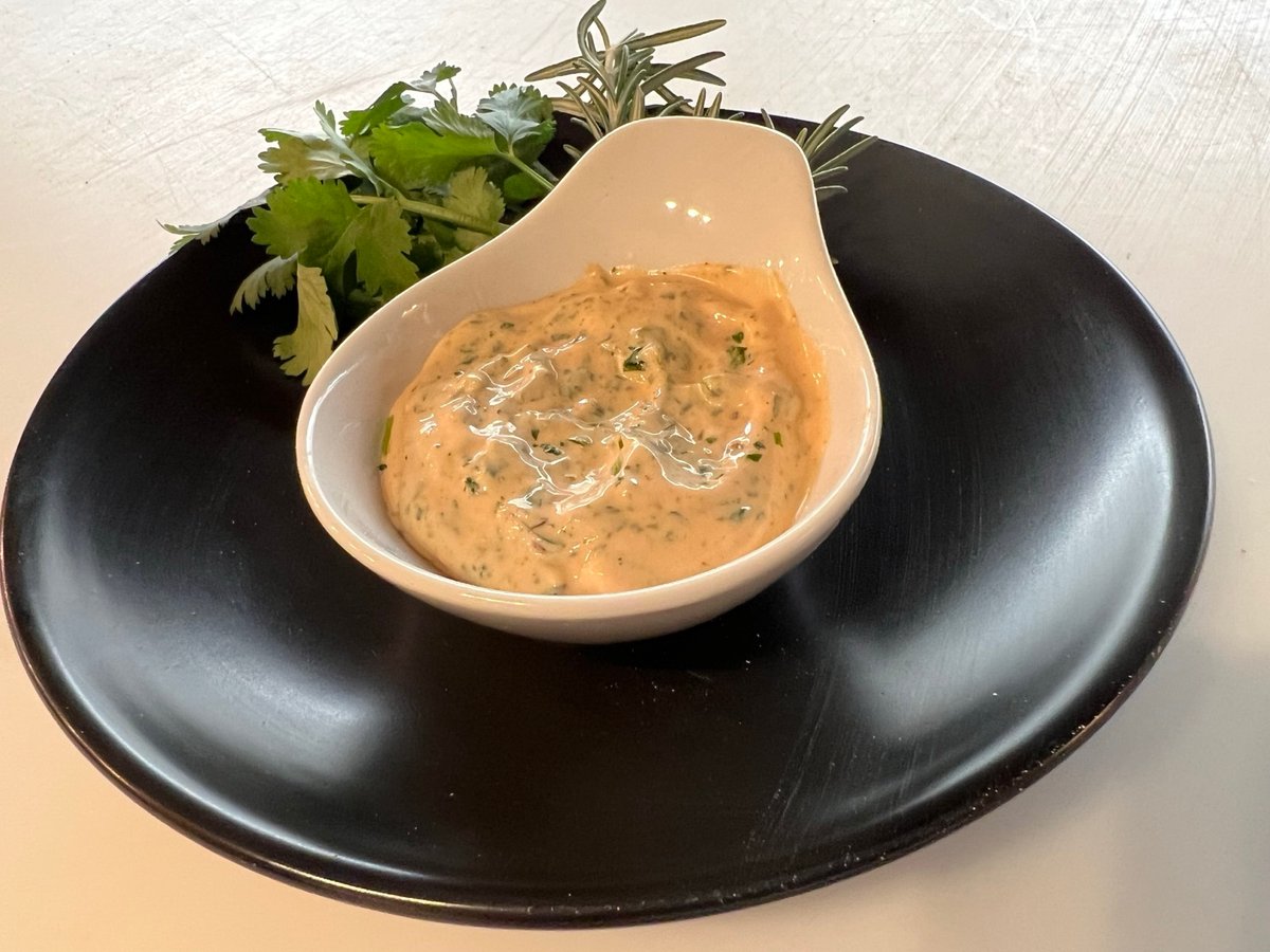 Selbstgemachter Dip mit frischem Knoblauch und 8-Kräuter Mix.