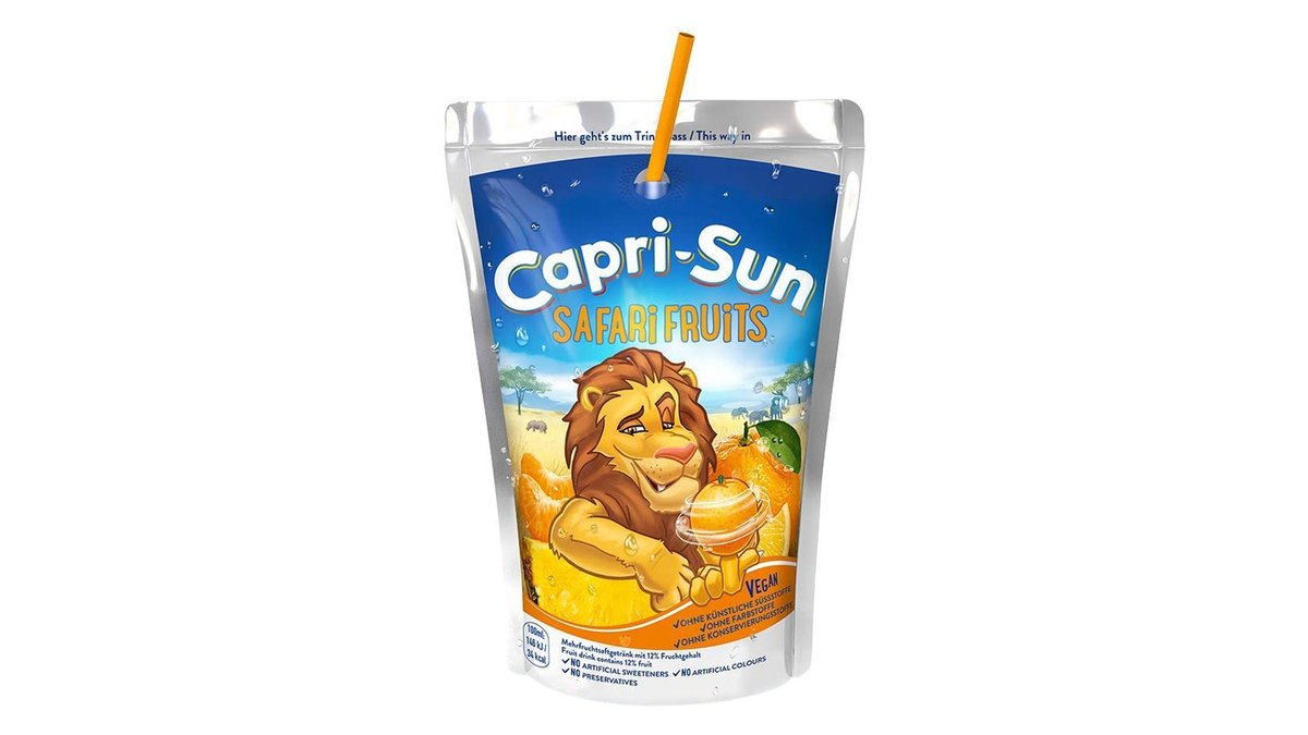 Mehrfrucht-Erfrischungsgetränk aus Wasser, Zucker, Fruchtsaft (Orange, Apfel, Ananas, Maracuja), ohne Kohlensäure