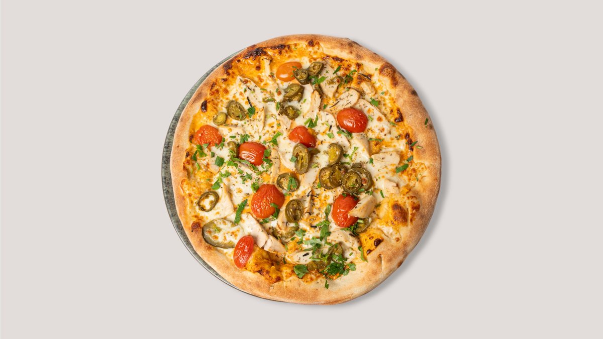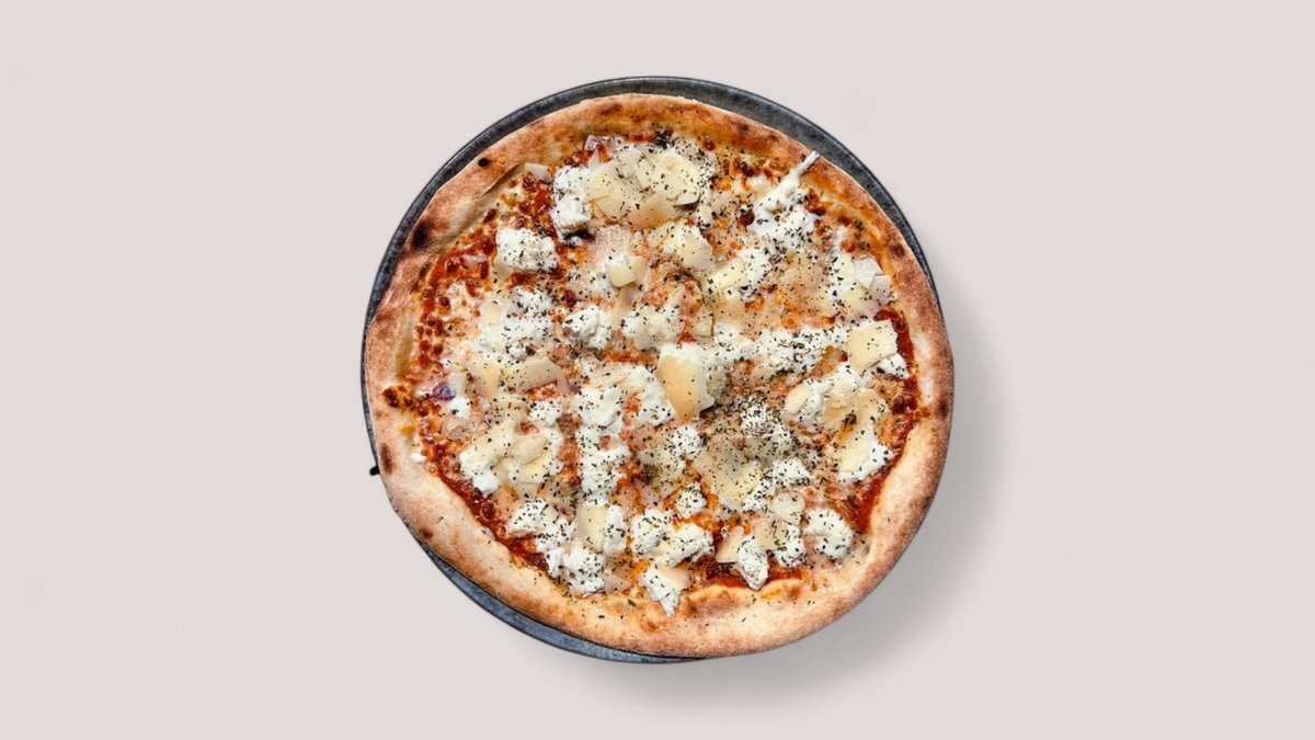 Weiße Pizza 4Käse mit getrockneten Tomaten und Brokkoli