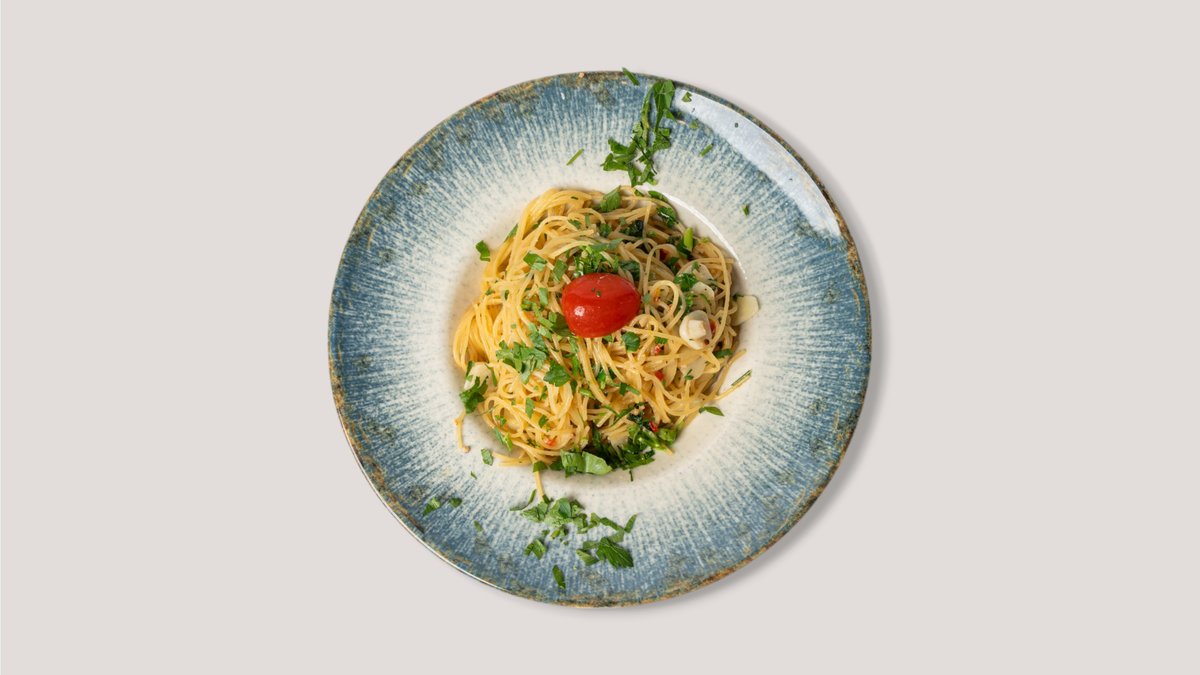 Spaghettini mit Knoblauch, frischer Petersilie, Olivenöl und Chili