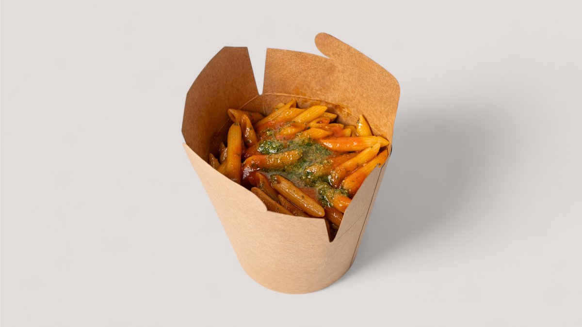 Maccheroni mit Pesto von getrockneten Tomaten und Ricotta mit Rucola und Gehobeltem Gran Padano
