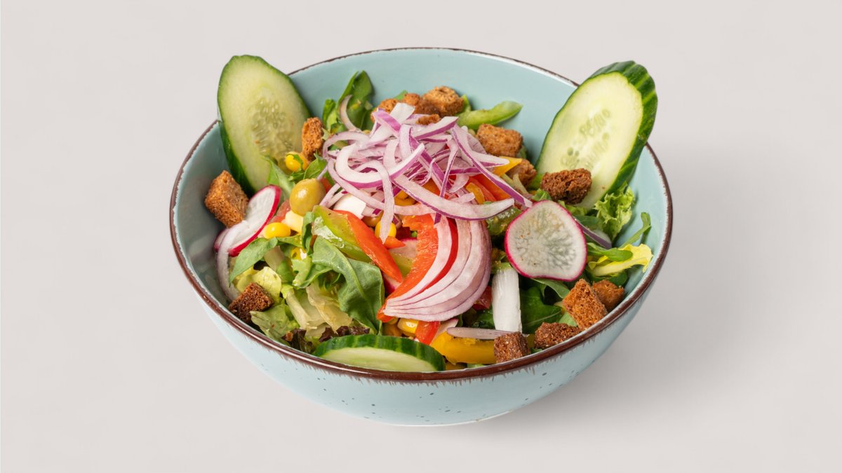 alle Salate werden mit einem Dressing deiner Wahl serviert