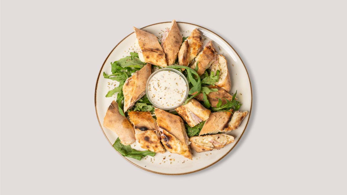 8 Stück gefüllt mit Mozzarella, einer Zutat deiner Wahl und Knoblauch-Dip