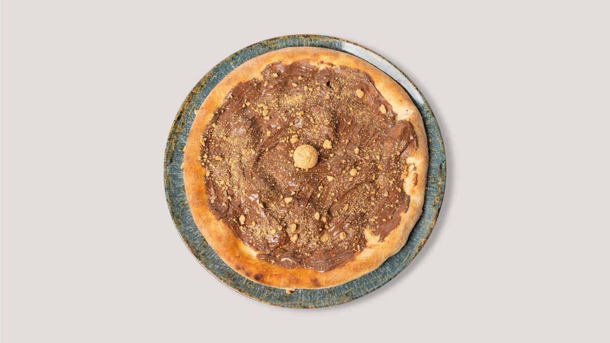 mit knusprigem Pizzateig, cremiger Nutella bestrichen und bestreut mit knusprigen Amaretti-Keksen