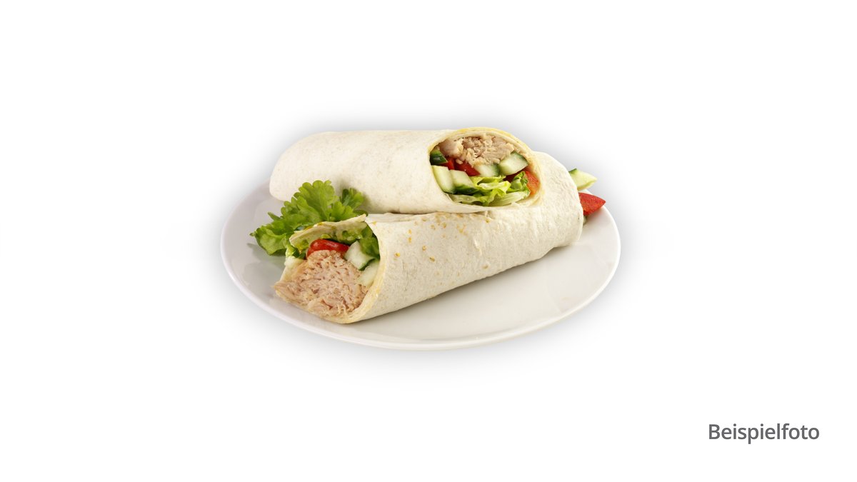feiner Thunfisch mit wĂĽrzigen Kapern und roten Zwiebeln im Wrap