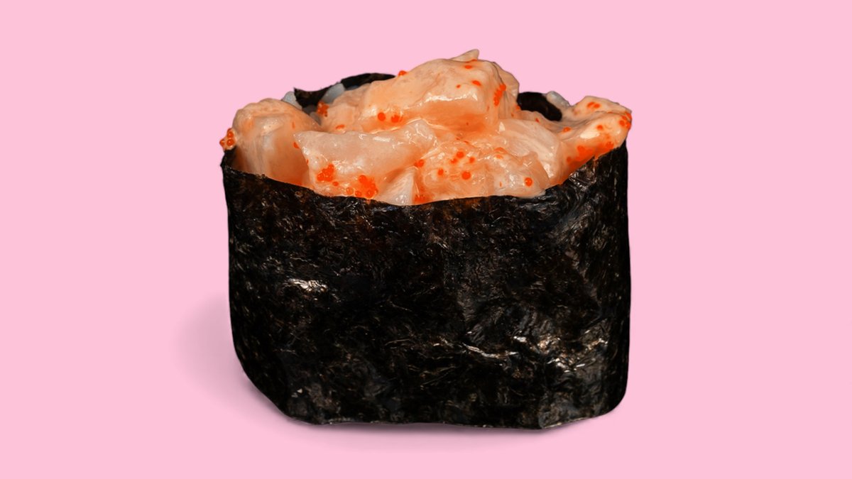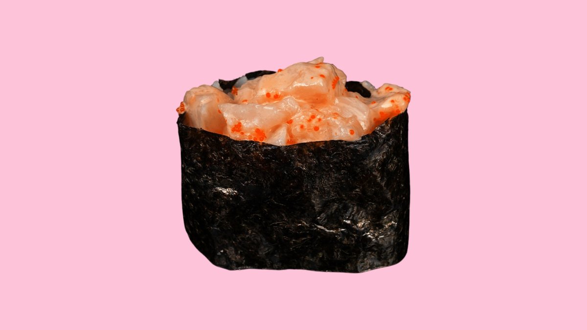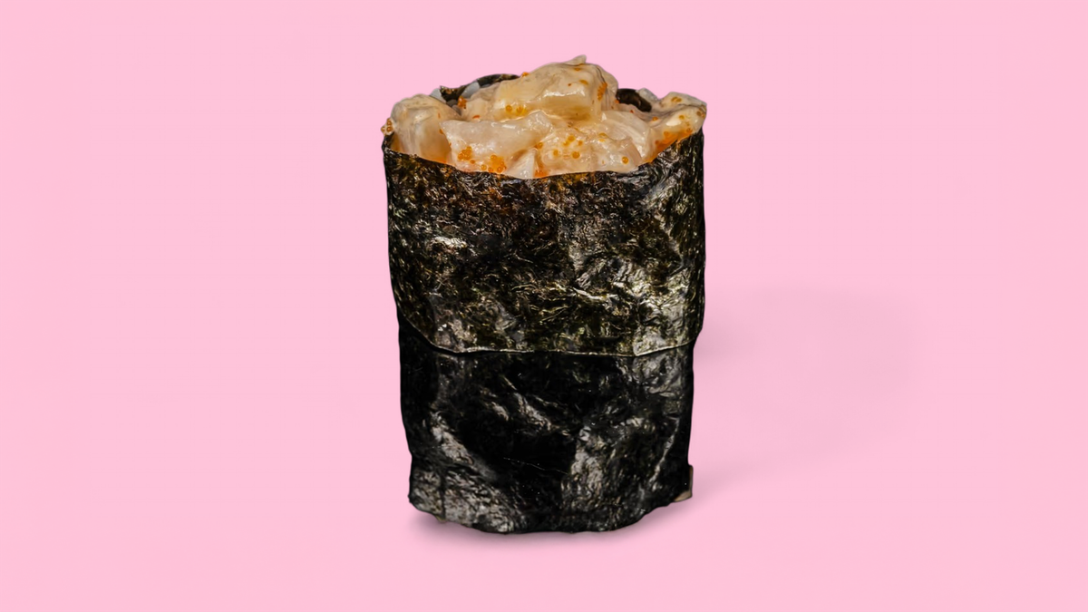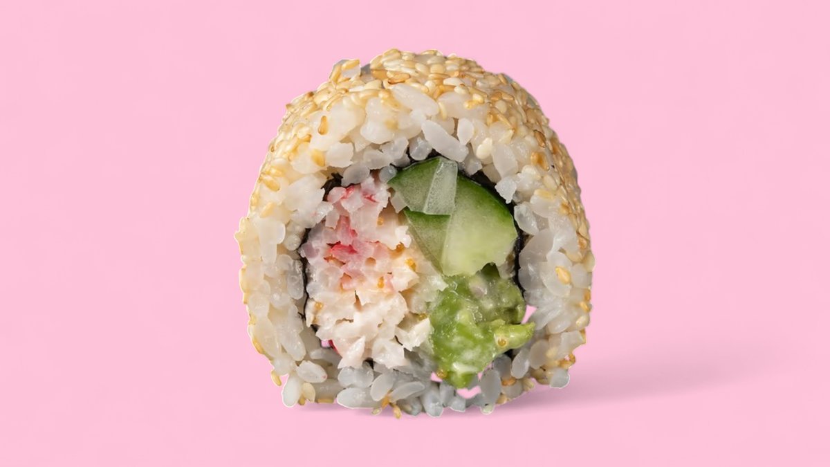cremig, aromatisch und mild-würzig mit Surimi, Mayonnaise, Tobiko, Avocado, Gurken und Sesam