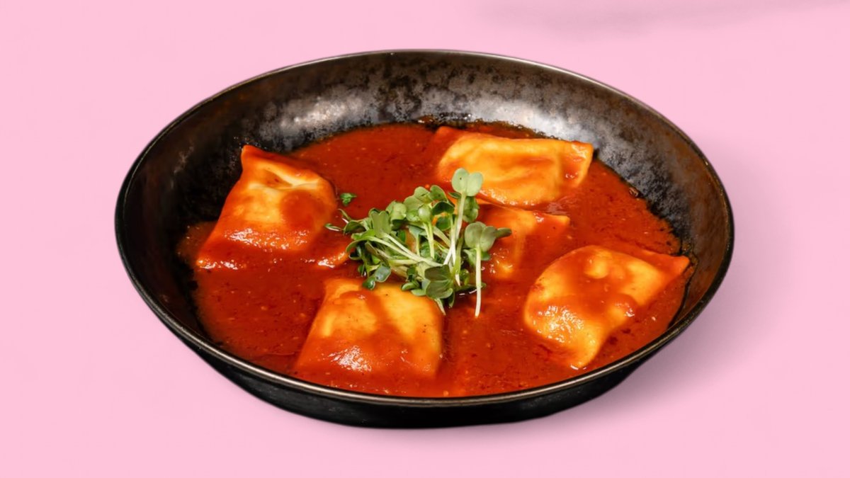 4 Stück, außen zart gedämpft, innen aromatisch und saftig Teigtaschen mit würziger Hähnchenfüllung und scharfer, süßer Chilisoße