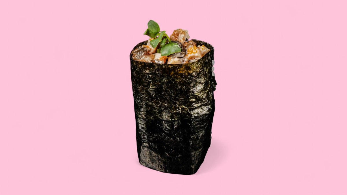 cremig, frisch und aromatisch mit knuspriger Nori-Umhüllung, fein gewürztem Lachs-Tatar