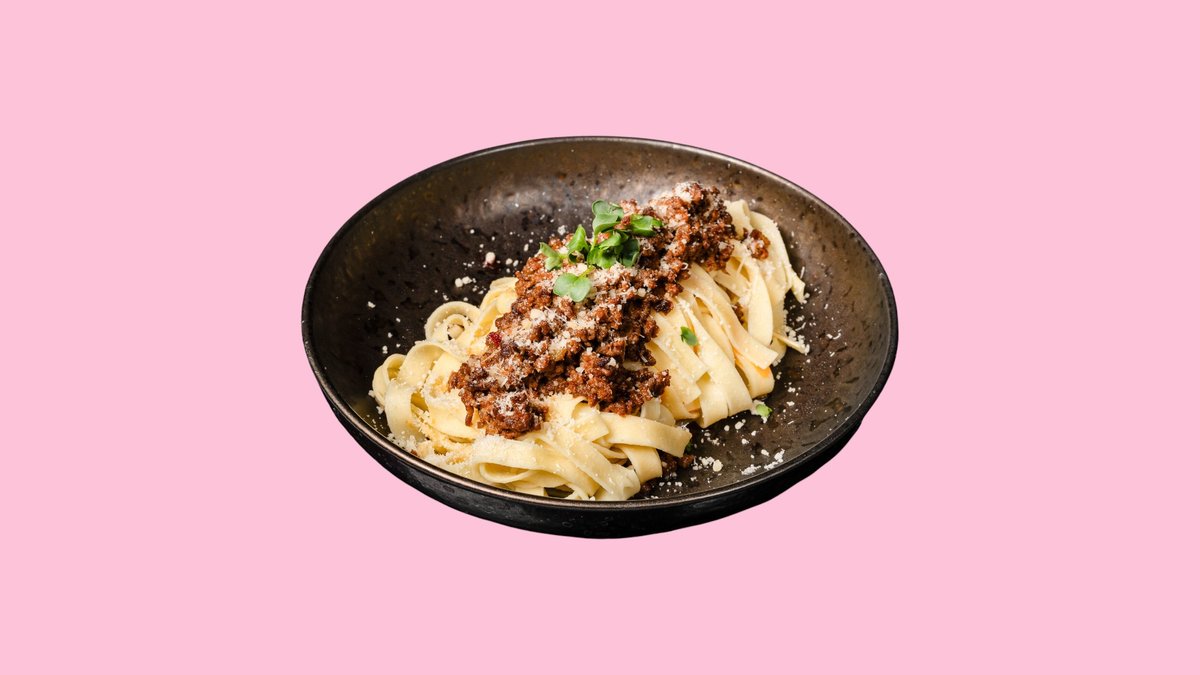 frische Tagliatelle in einer reichhaltigen, stundenlang geköchelten Ragù alla Bolognese (Rind-Schwein-Mix)