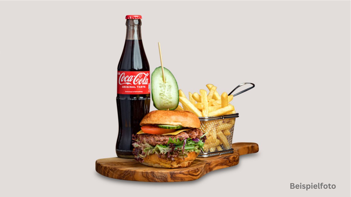 alle Menüs werden mit einem Burger, einer Beilage, einer Soße und einem Getränk deiner Wahl serviert