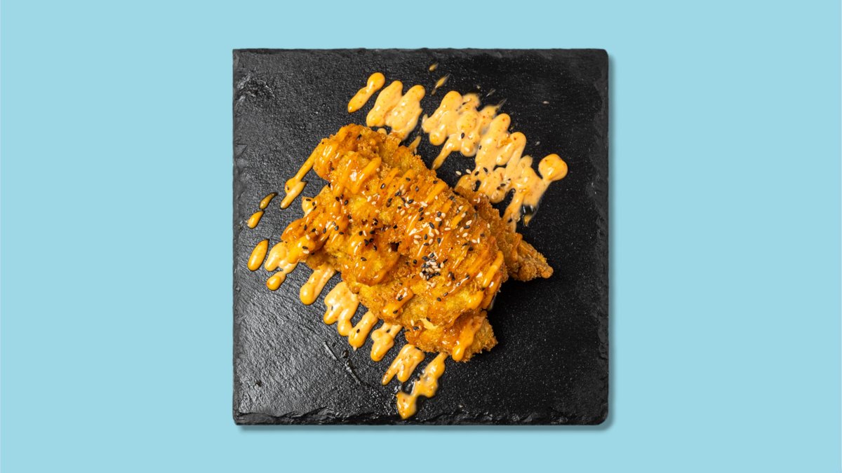 mit Crispy Chicken 130g, Lollo Rosso, Kimchi Krautsalat, Fedde Buledde-Soße und Korean-Soße