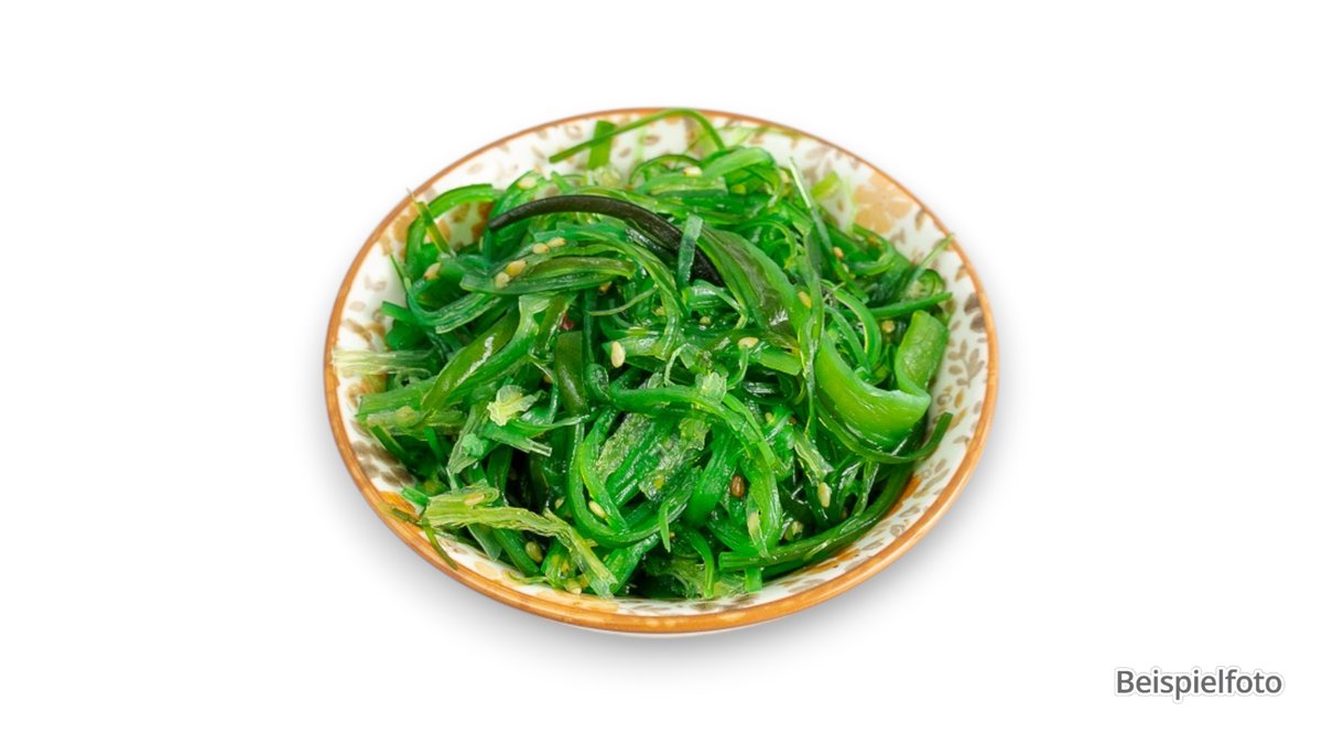 mit Sojabrühe, Seetang und Frühlingszwiebeln