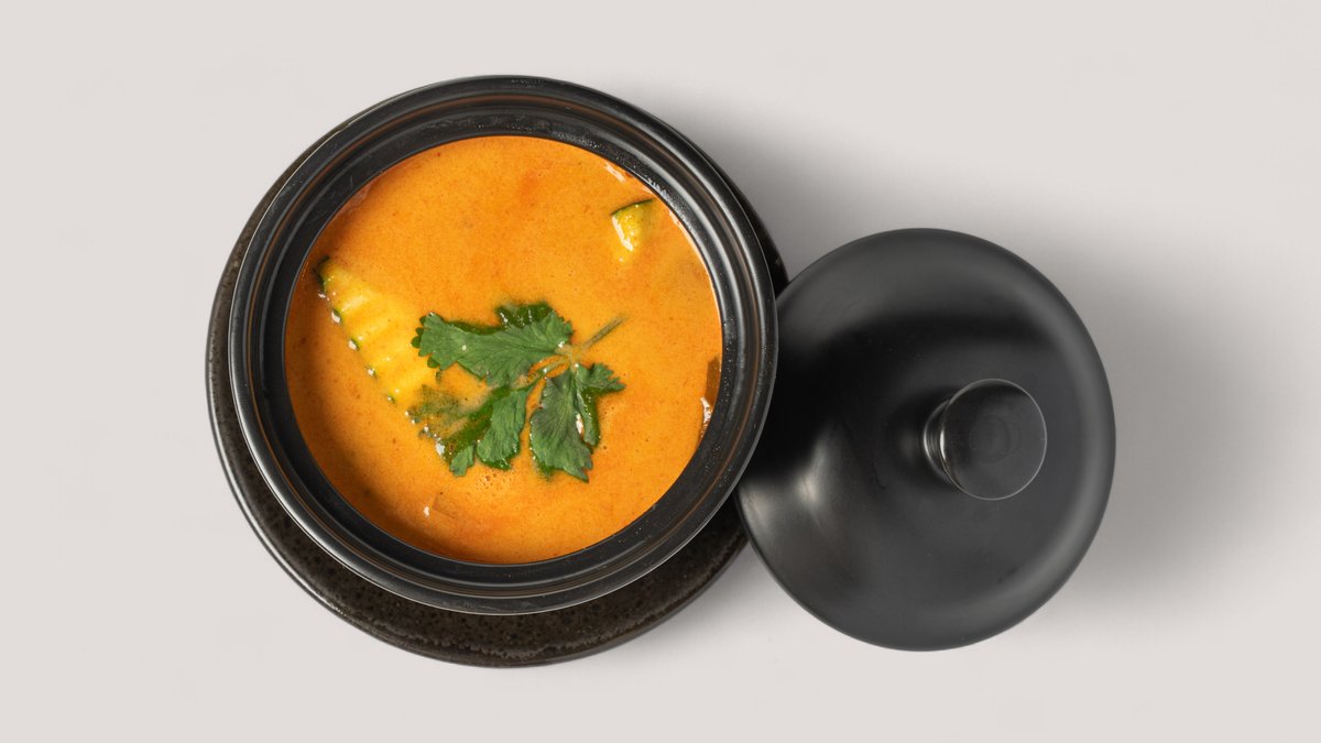 mit Kokoscreme, Hühnerbrühe, Gemüse, Pilzen und Kräutern