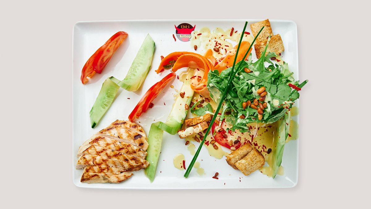 mit Schafskäse, Salat, Cocktailsoße und Tsatsiki