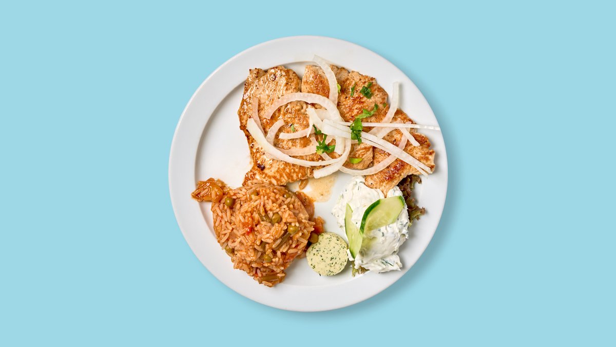 alle Gerichte werden mit gemischtem Salat, Tsatsiki und Giouwetschreis serviert