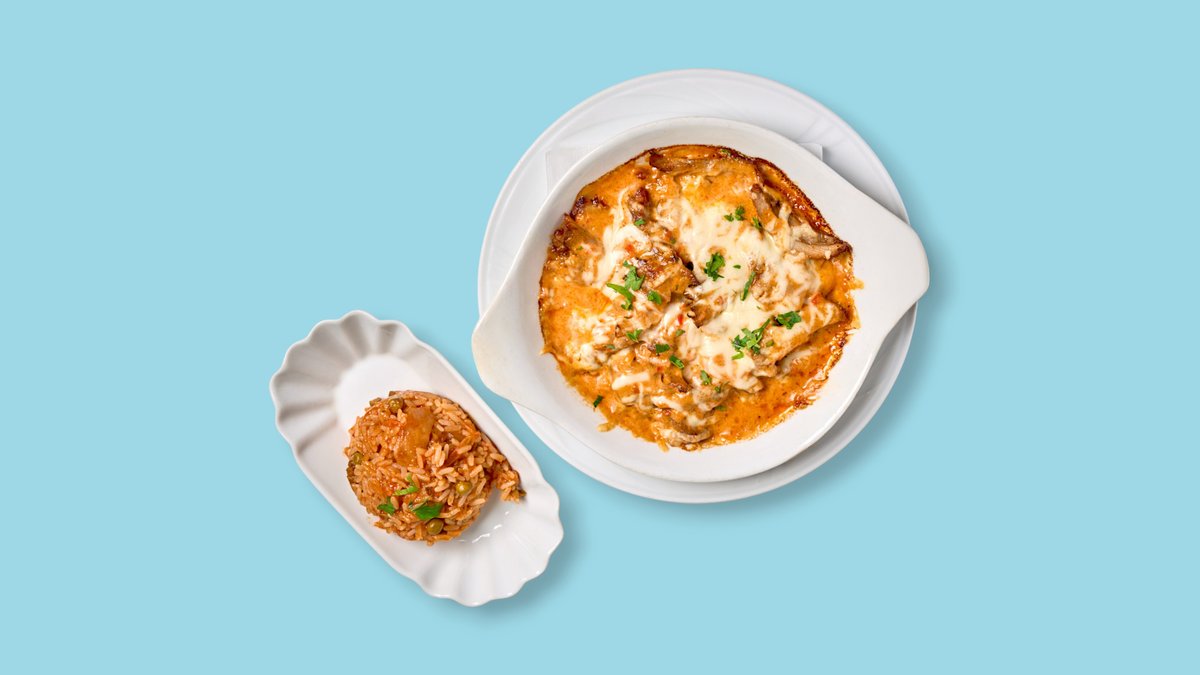mit Käse überbacken und Giouwetschreis Enthält Alkohol, für Kinder und schwangere Frauen nicht geeignet