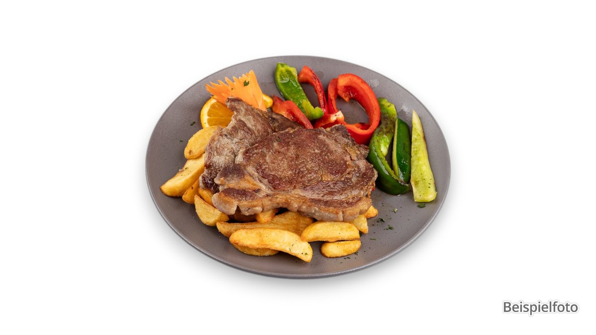 1x Gyros vom Schwein, 2x Lammkoteletts, 2x Zuzukia vom Schwein und Rind, 2x Schweinesteaks