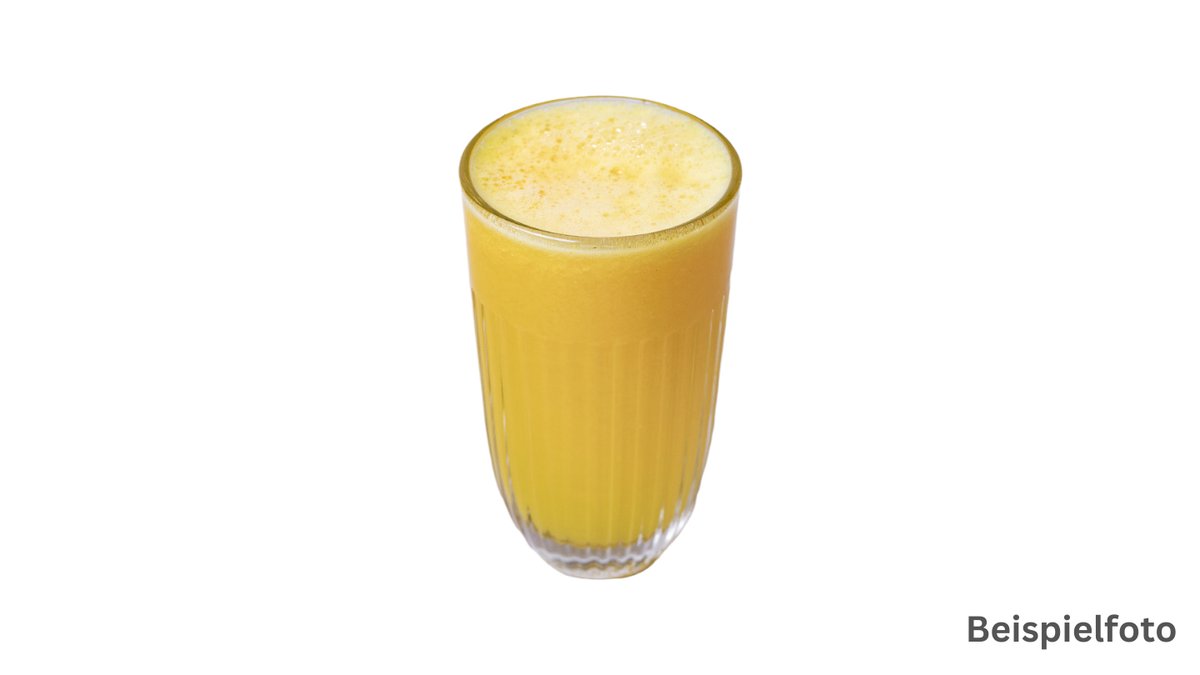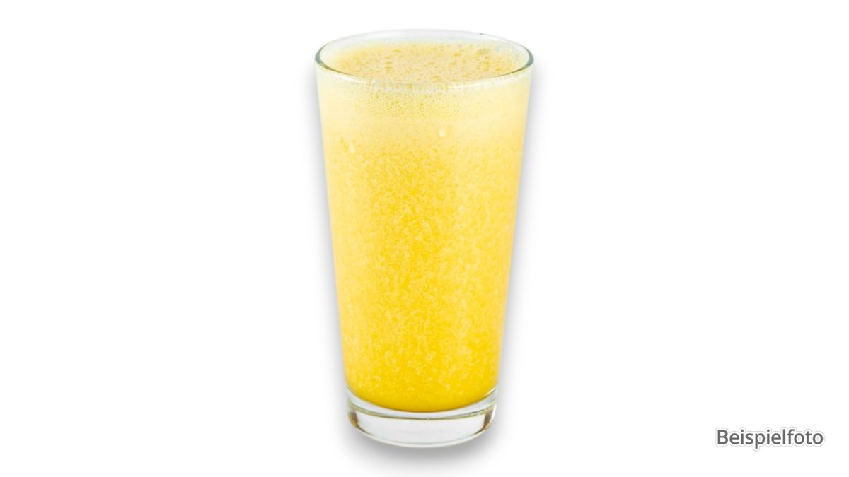 mit frischgepresstem Orangensaft, Bananen, Erdbeeren, Mangonektar und Erdbeersorbet