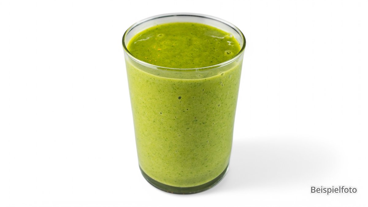 mit Spinat, Ananas, Mango, Bananen, frischgepresster Apfelsaft und Spirulina