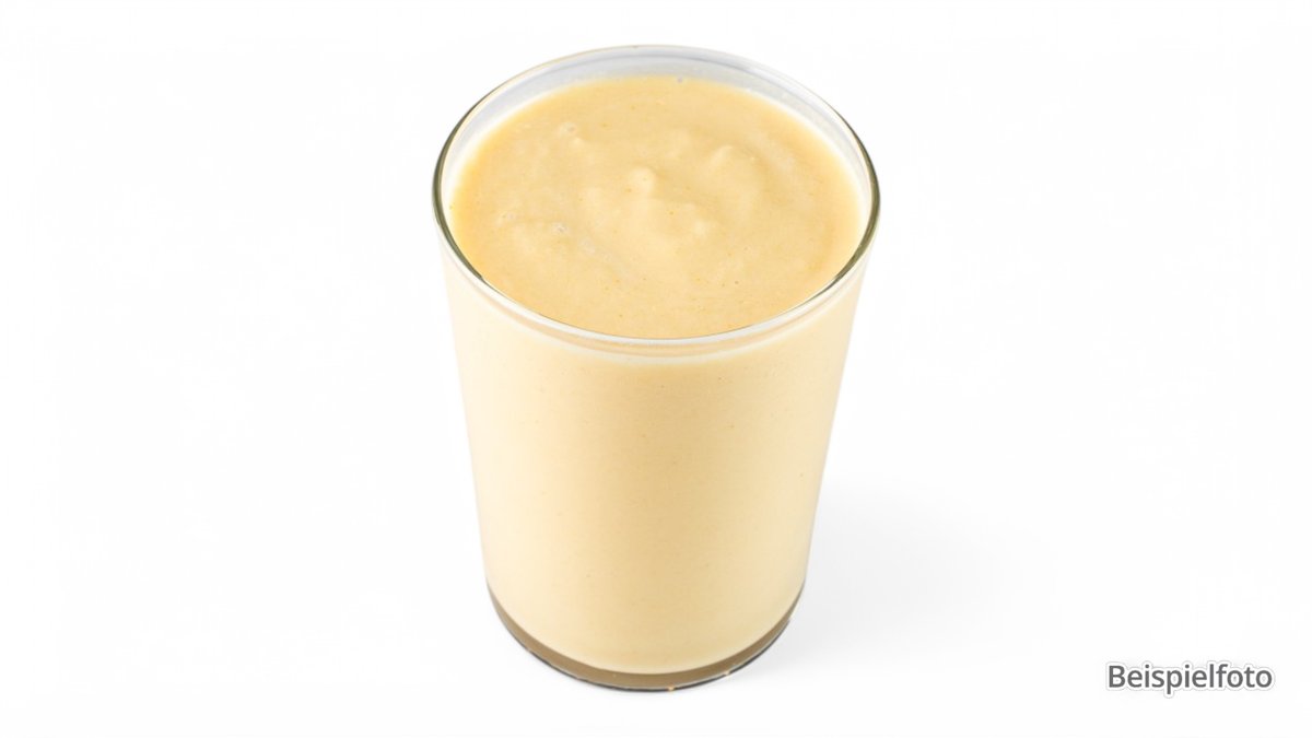 mit Erdbeeren, Bananen, frischgepresstem Apfelsaft, fettarmer Milch und Erdbeersorbet