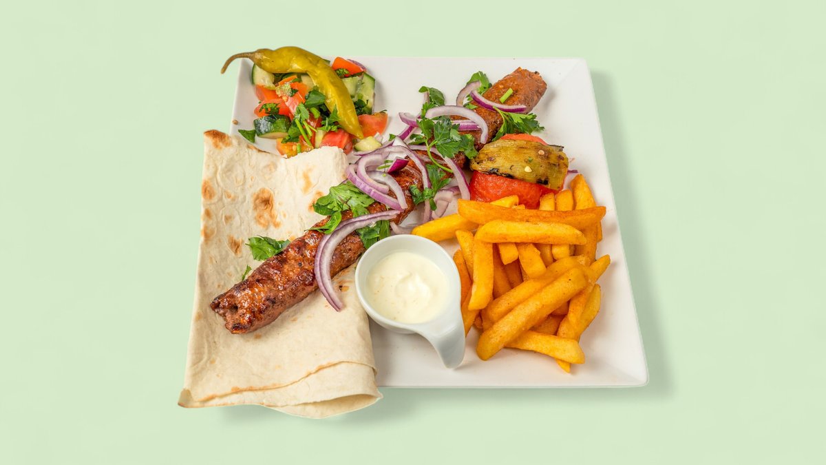 alle Gerichte werden mit Salat, Lawasch, Tomaten und einer Beilage deiner Wahl serviert („Komitas Teller” wird ohne Tomaten serviert, „Jerewan Grillplatte” wird ohne Beilage serviert)
