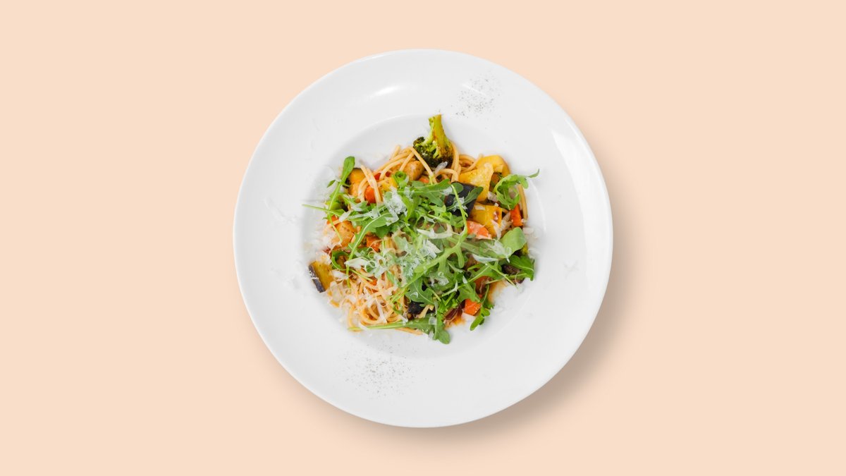 24. Gemüsepfanne mit Olivenöl und Rucola