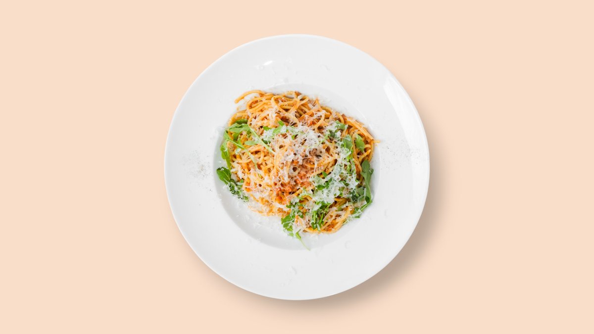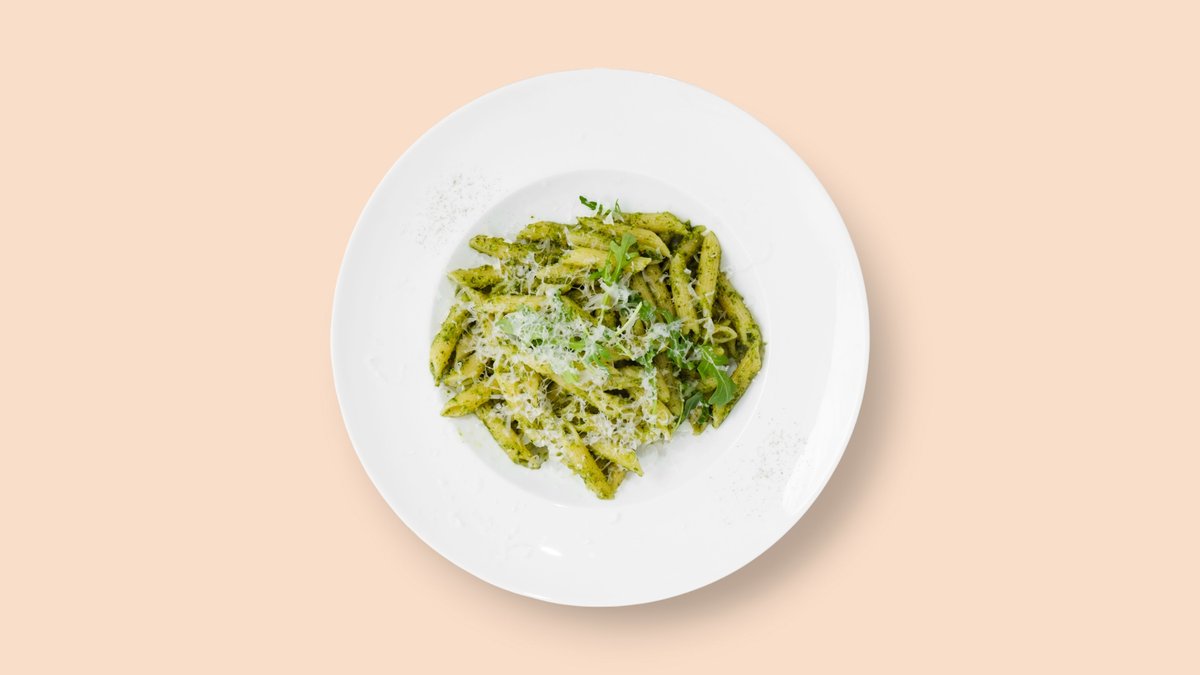 Pasta mit Mandeln, Parmesan, Petersilie, Rucola und Zitrone