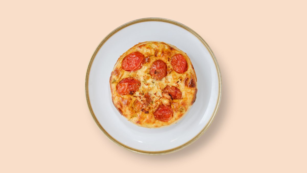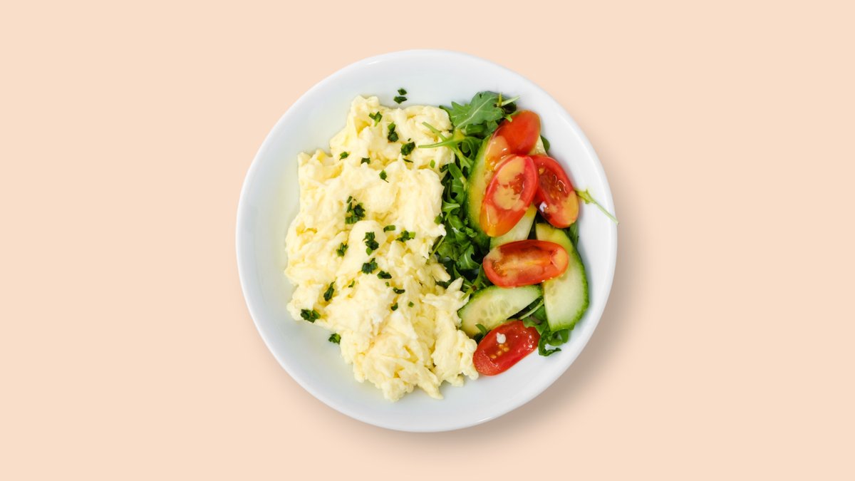 Rührei aus dem Ofen mit Parmesan, Frischkäse, Kräutern und Kirschtomaten