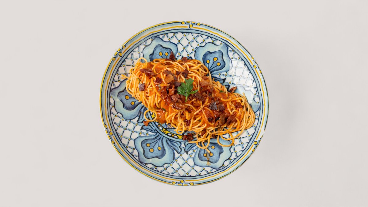 mit Guanciale, Zwiebeln, Tomatensoße und Chili