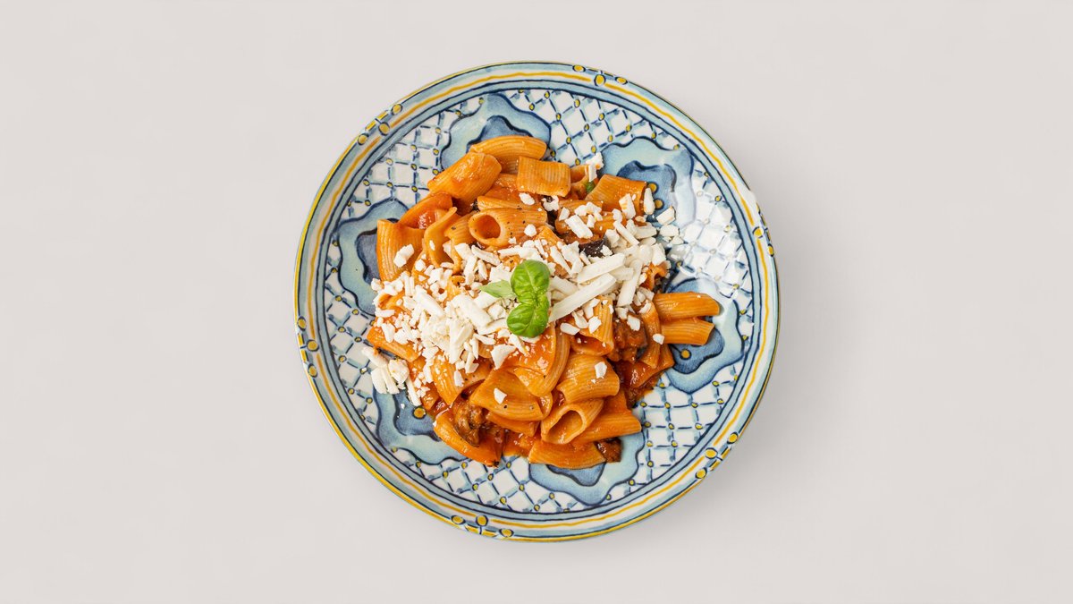 Glocken-Nudeln mit Tomatensoße, Zucchini und Auberginen