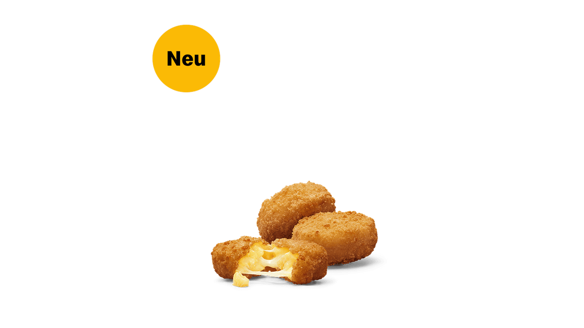 Die lässt keine Wünsche offen: Die Chicken Cheese Box, randvoll mit 17 goldbraun frittierten Gaumenfreuden – 12 Chicken McNuggets mit zartem Chicken und 5 Käsespätzle Snackers, gefüllt mit Spätzle und cremiger Schmelzkäsezubereitung. Da bleiben doch keine Wünsche offen, oder? + 3 Gewinnchancen - Solange der Vorrat reicht!