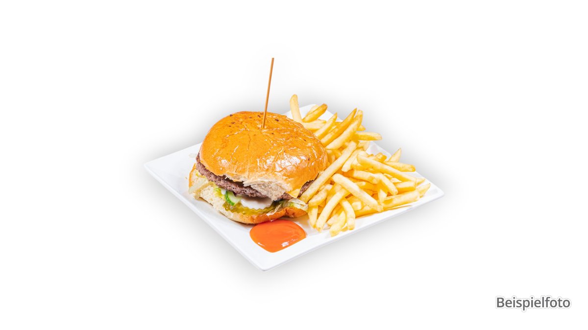 mit Hacksteak und doppeltem Käse dazu Pommes frites