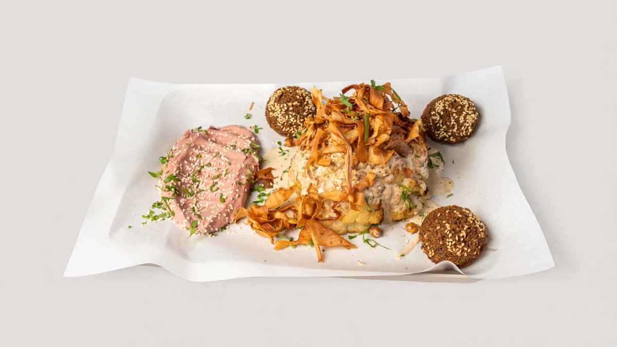 Blumenkohl auf Rote-Beete-Creme mit Dukkah, gerösteten Kichererbsen, Tahina und Pastinaken-Crunch