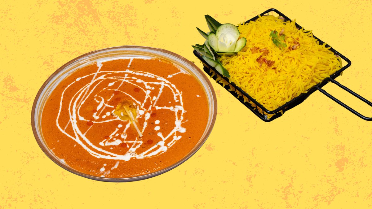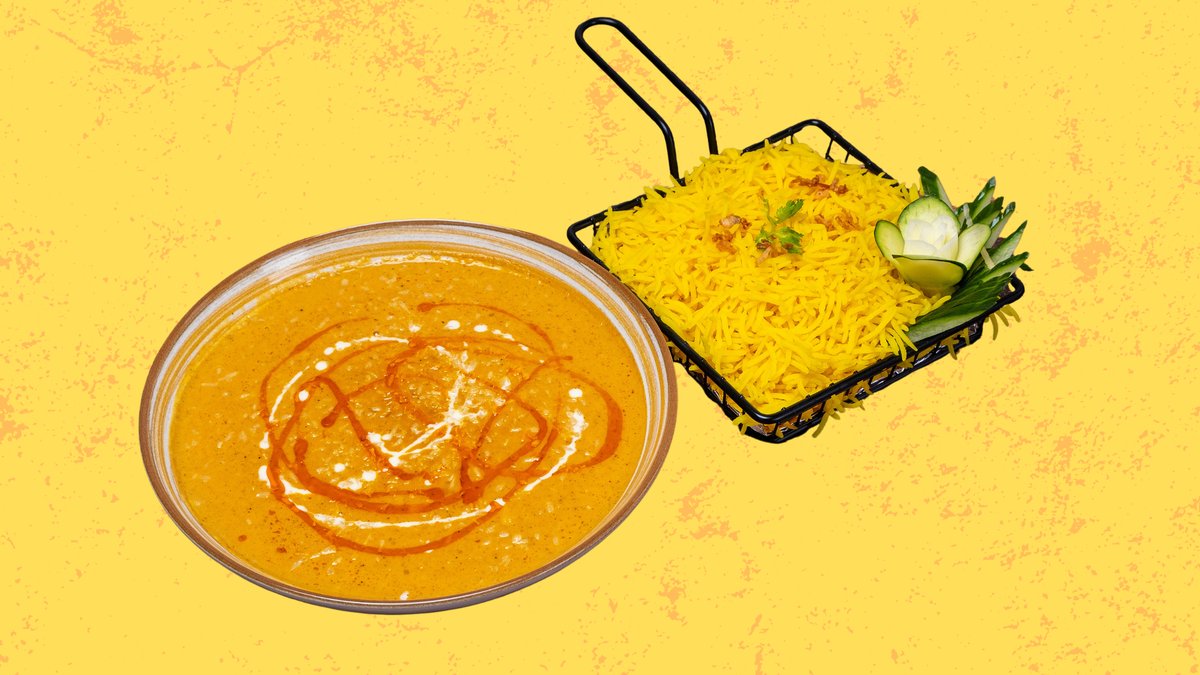 mit Butter Chicken, Tadka Daal, Basmatireis, 1 x Roti