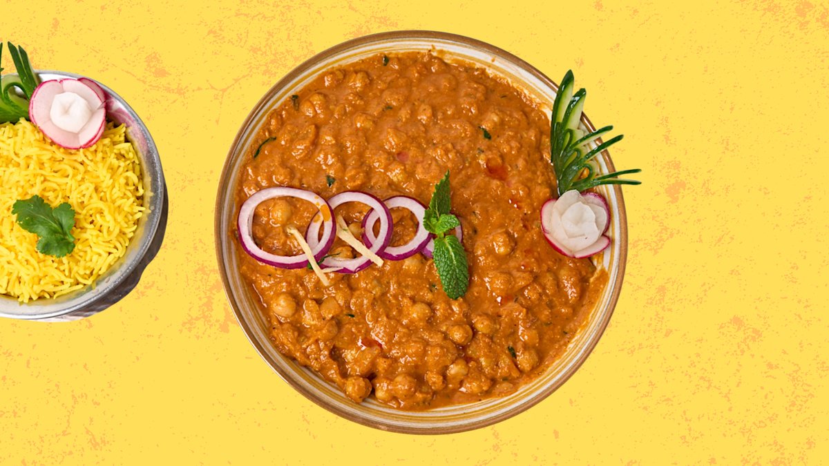 mit Kichererbsen in würziger Currysoße mit Kreuzkümmel und Ingwer