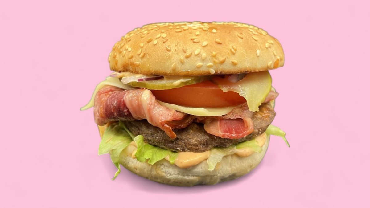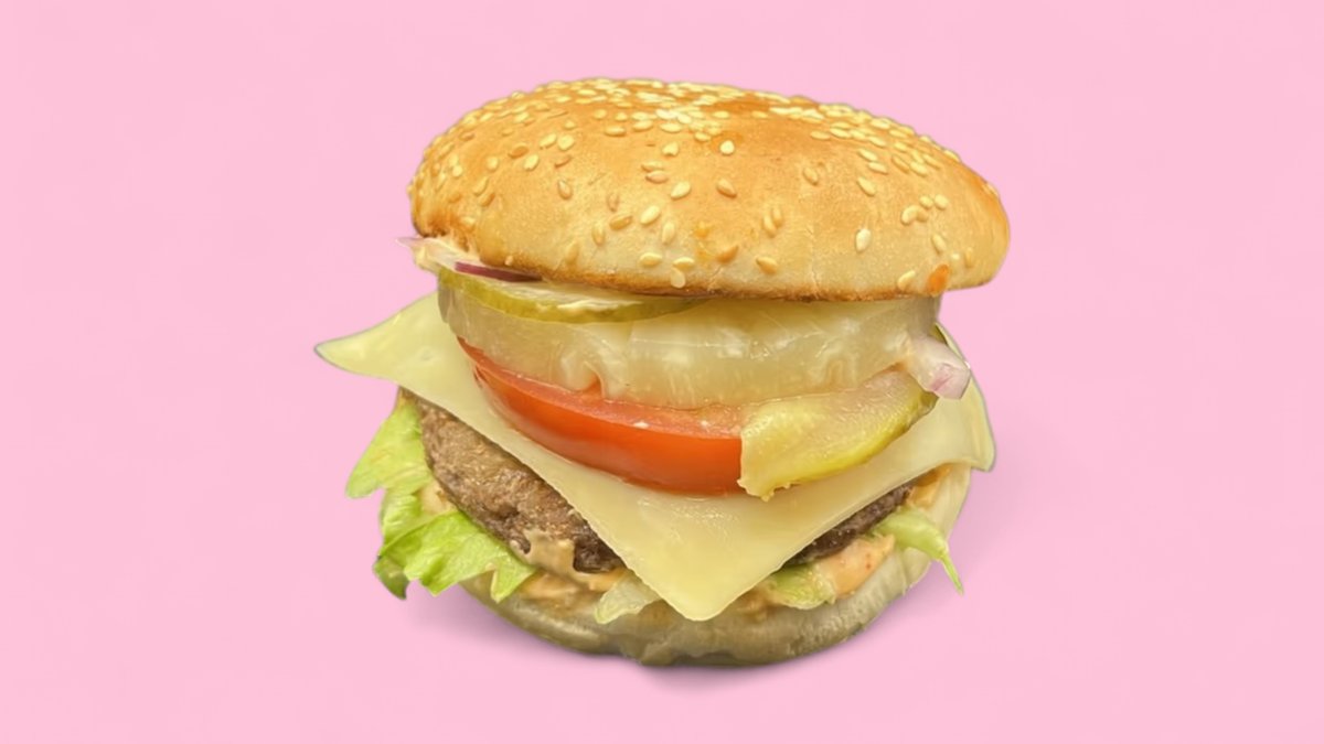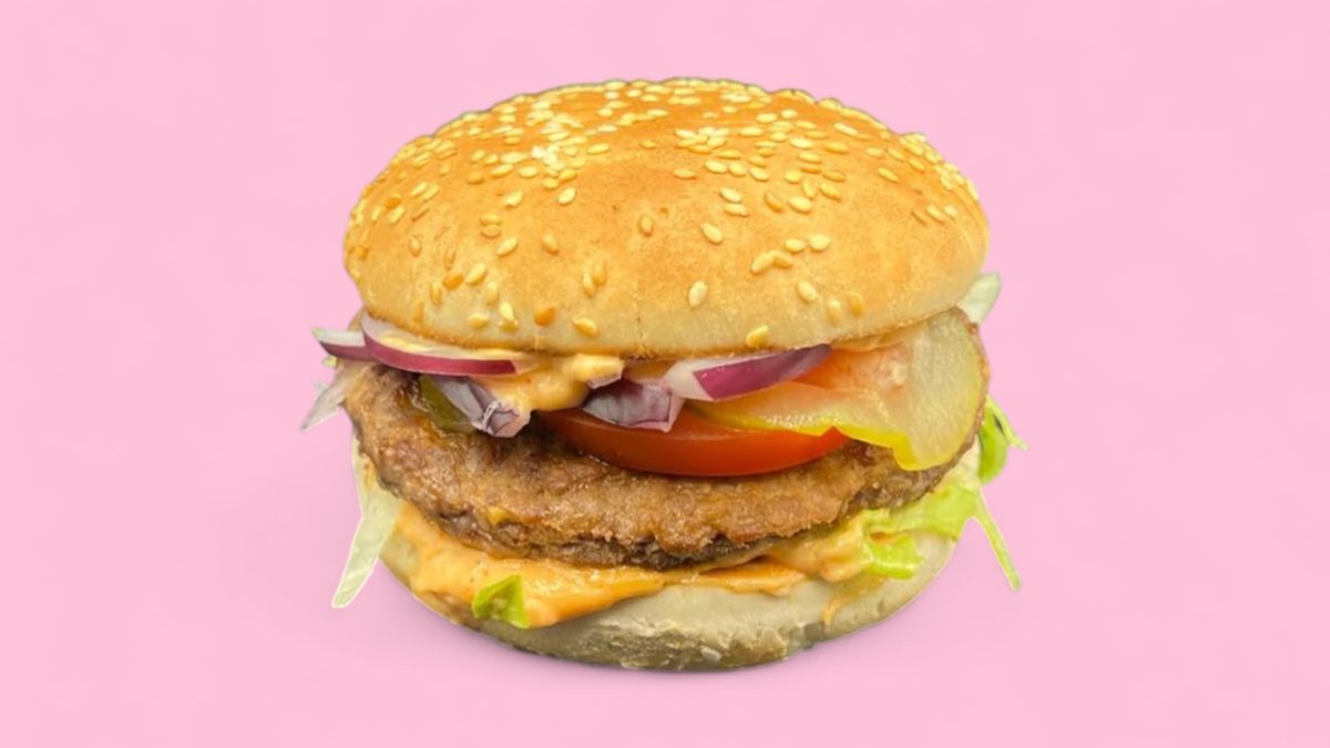 alle Burger werden mit 62,5 g Rindfleischpatty, Zwiebeln, Tomaten, Gewürzgurken und Eisbergsalat zubereitet