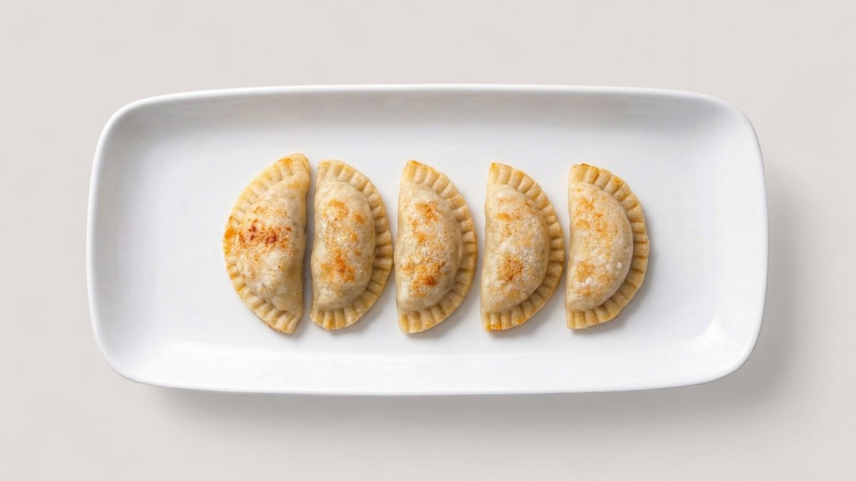 5 Stück gebratene japanische Teigtaschen, serviert mit Soja-Ingwer-Dip