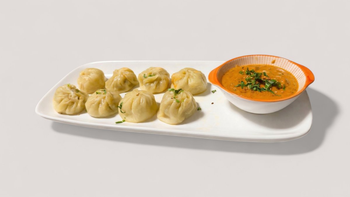 jede Portion enthält 10 Stück und wird aus einem Teig aus Weizenmehl mit Salz, Himalaya-Gewürzen, Öl, Hackfleisch, Zwiebeln, Knoblauch, Ingwer, Frühlingszwiebeln, Koriander, hausgemachter Tomatensoße und Sesam-Erdnusssoße zubereitet