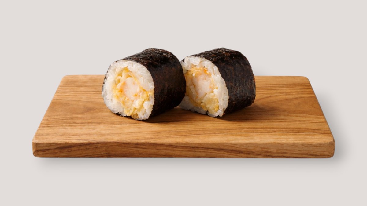 mit zarten Garnelen, Sushi-Reis und umhüllt von Nori